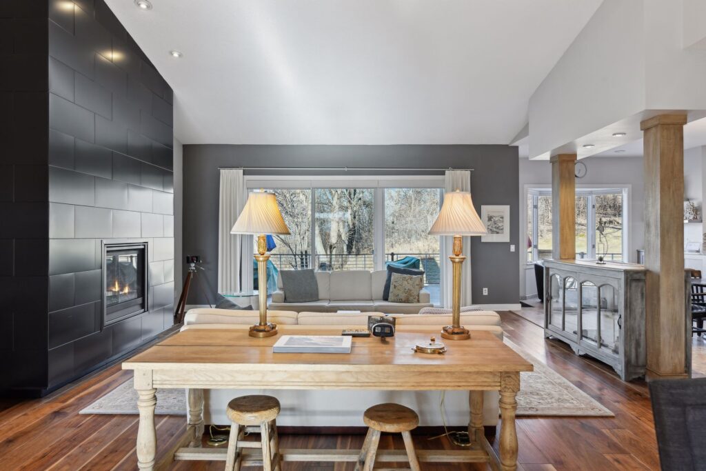 Stunning contemporary townhome with vaulted ceilings and an open floor plan and a main floor primary suite. Very large kitchen with high-end appliances, bar, wine cellar, eat-in kitchen, and sitting area. Two additional bedrooms upstairs (one is used as a library). Huge deck overlooking the large and private back yard. Massive oversized three-car garage. Ideally located near trails, Bryant Lake, Shady Oak Beach, and one of the best dog parks. Close to numerous restaurants and coffee shops. Many recent updates and improvements. See supplements.