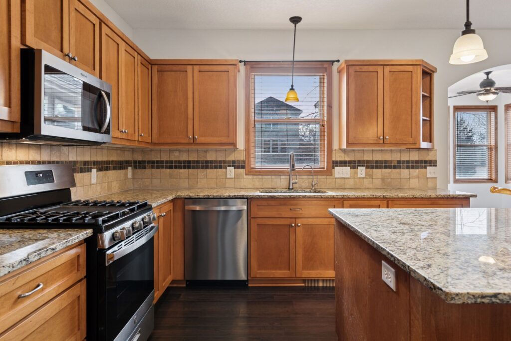Spacious end unit two-story detached town home featuring an open floor plan, large center-island kitchen, rich hardwood floors, and a gas fireplace surrounded by built-ins. Main level office, sunroom and two decks overlooking a pond. Primary suite with a private bath and radiant floor heating. Two additional bedrooms upstairs. The lower level features a media room, fourth bedroom, full bath, and den. The home was freshly painted and is in terrific condition. Very walkable location.